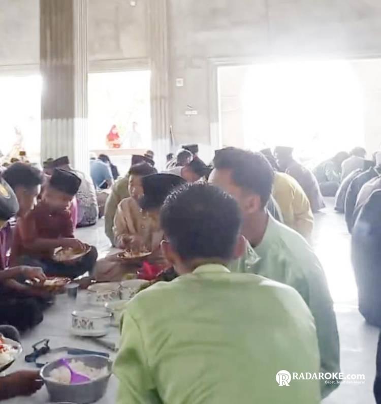 Setelah ziarah kubur, kegiatan dilanjutkan dengan makan bersama di dalam masjid sebagai wujud kebersamaan dan rasa syukur.