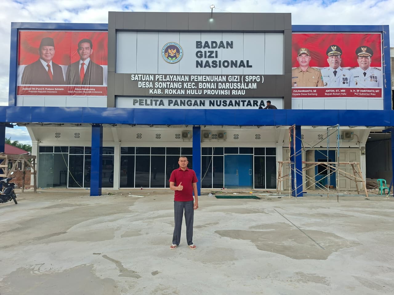 hebatriau.com, Rokan Hulu, Riau — Pembangunan gedung layanan Badan Gizi Nasional di Desa Sontang, Kecamatan Bonai Darussalam, Kabupaten Rokan Hulu, kini memasuki tahap akhir dan dijadwalkan akan diresmikan dalam waktu dekat. Fasilitas bernama Pelita Pangan Nusantara ini akan berfungsi sebagai Satuan Pelayanan Pemenuhan Gizi (SPPG) yang ditujukan untuk memperkuat upaya peningkatan kualitas gizi dan kesehatan masyarakat.