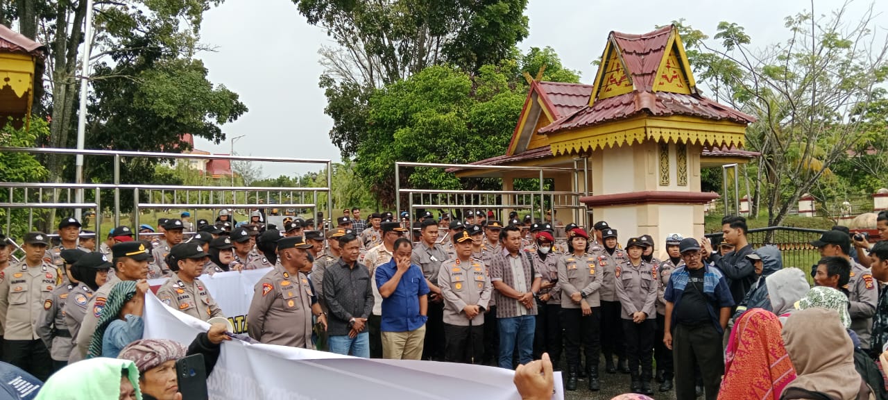 hebatriau.com, Pelalawan - Ratusan masyarakat enam desa di Kabupaten Pelalawan yang tergabung dalam Aliansi Mahasiswa dan Masyarakat Pelalawan (AMMP) menggelar aksi unjuk rasa di kantor Bupati Kabupaten Pelalawan,Kamis (04/12/2025). Warga yang diklaim berada di kawasan Taman Nasional Tesso Nilo (TNTN) ini mendesak pemerintah agar tidak sewenang-wenang mengusir mereka dari tanah yang sudah lama mereka tempati.